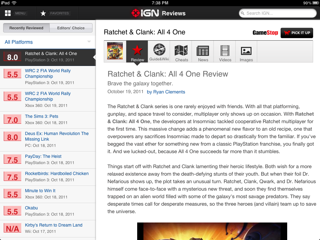 I was part of Code Foo and my partner Alex and I created an Ipad web application called IGN Touch: